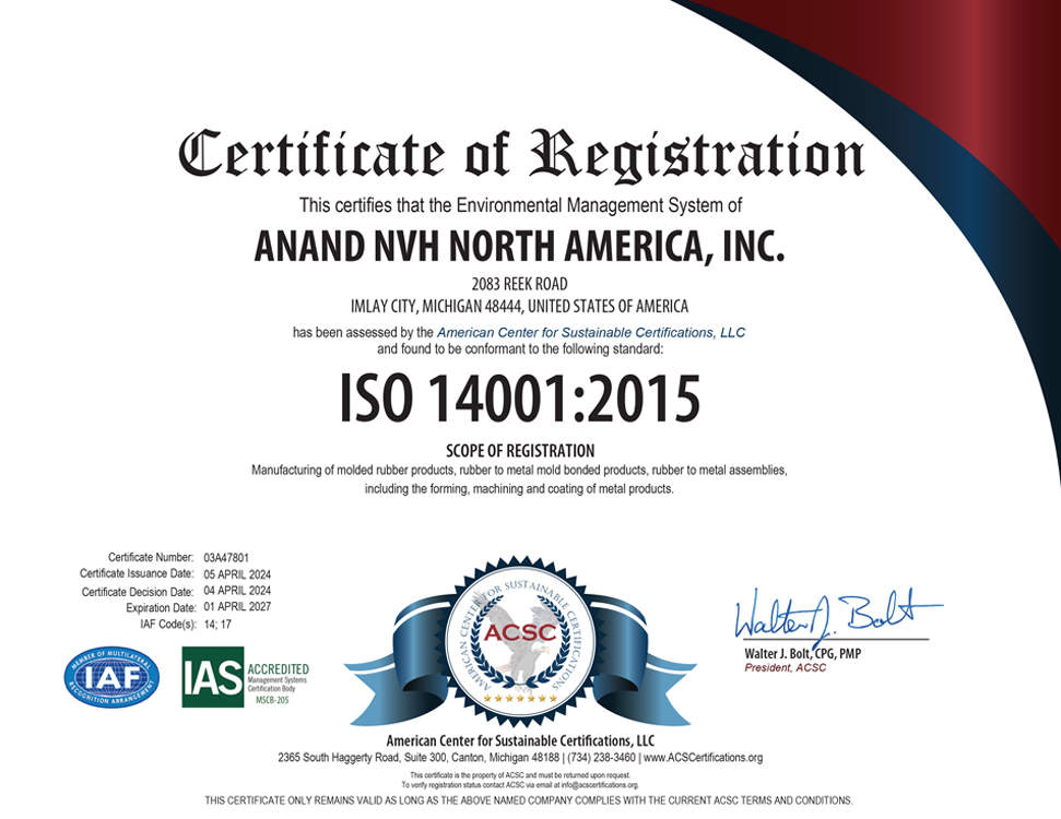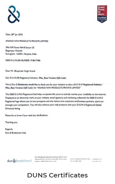 Anand NVH Products believes in standardization of business processes globally.