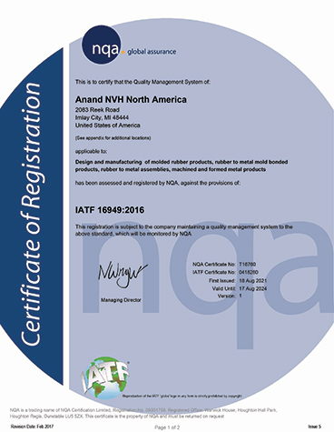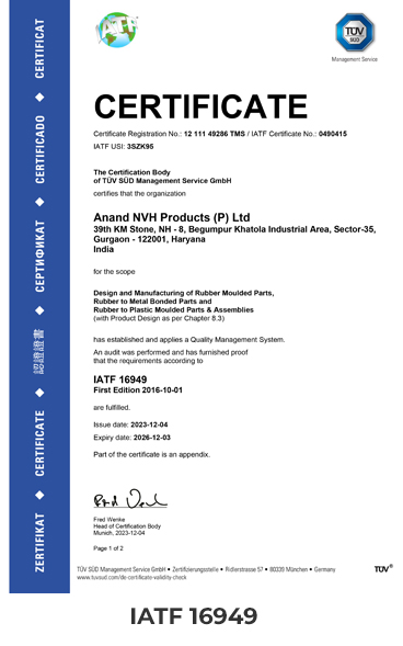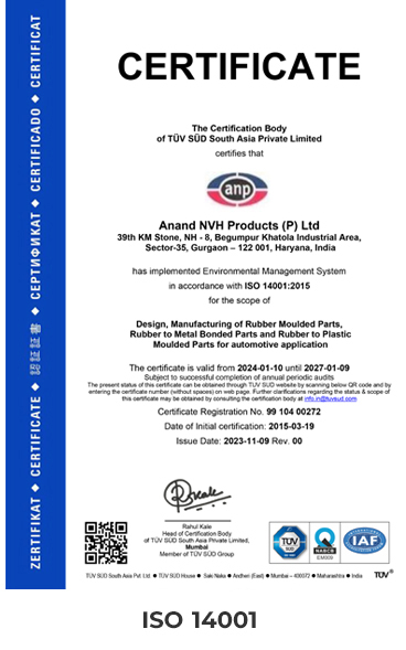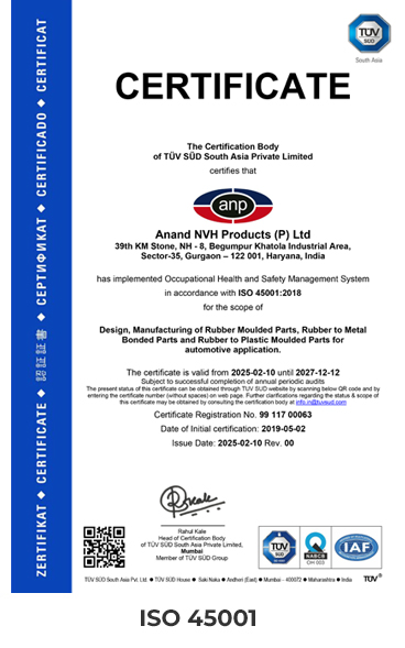 Product quality is the most vital factor into fulfiling our global customer expectations. Anand NVH products has implemented processes and systems throughout the value stream to ensure manufacturing world class products. Error proofing / poka yoke is implemented at multiple stages to ensure that only quality products are produced.